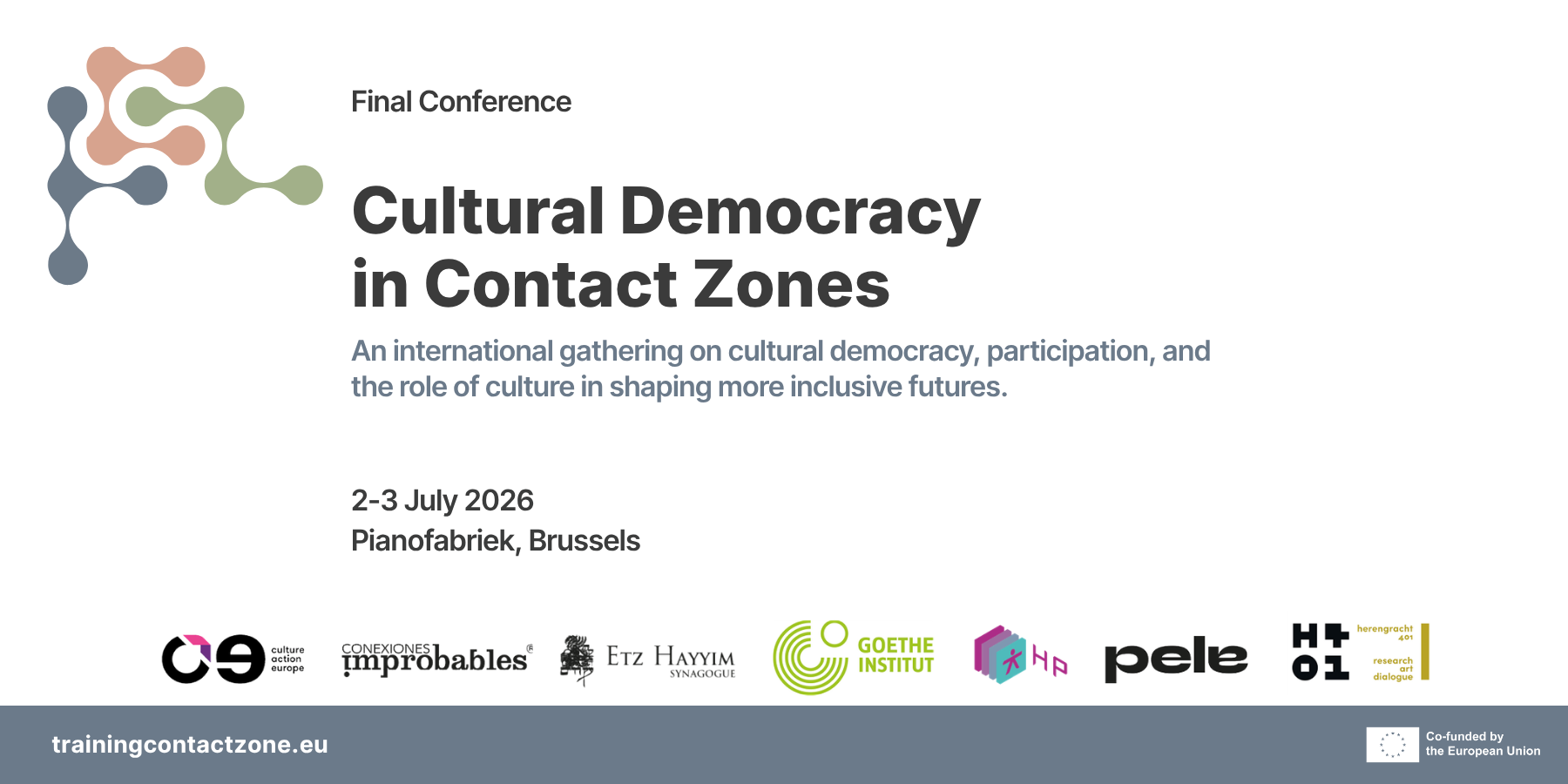 At a time of growing polarisation and social fragmentation, spaces where differences can interact are increasingly under pressure. In this context, ensuring cultural democracy, cultural rights, and democratic participation becomes challenging. We require culture and heritage spaces where difference is not only acknowledged but actively held and negotiated. We need forms of participation that allow people to access culture, as well as shape it, question it, and see themselves reflected in it. This conference will explore the structural conditions needed to sustain this work. We will look at how participatory cultural practices can be more consistently recognised, supported, and funded, with a specific focus on how the insights and methods developed through Training for the Contact Zone can inform European cultural policy and better integrate culture’s democratic role across sectors.