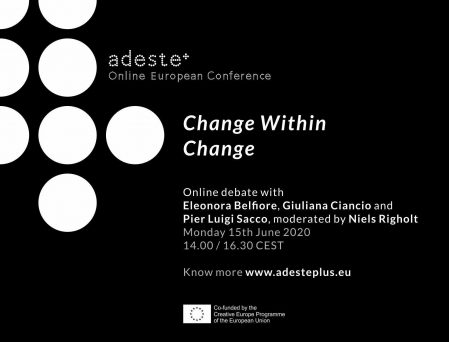 Adeste+ online conference focused on the current challenges for arts- and cultural institutions and their audiences. The conference explored the latest perspectives on concepts of cultural democracy and audience development and looked at its relevance for organizations. Niels Righolt moderated the conversation with Eleonora Belfiore, Giuliana Ciancio and Pier Luigi Sacco.