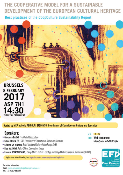 Cristina Da Milano of CAE, together with Giovanna Barni from CoopCulture will present the best practices of the CoopCulture Sustainability Report. The meeting shall take place on Wednesday 8th of February 2017 in the European Parliament from 14:30 to 16:00